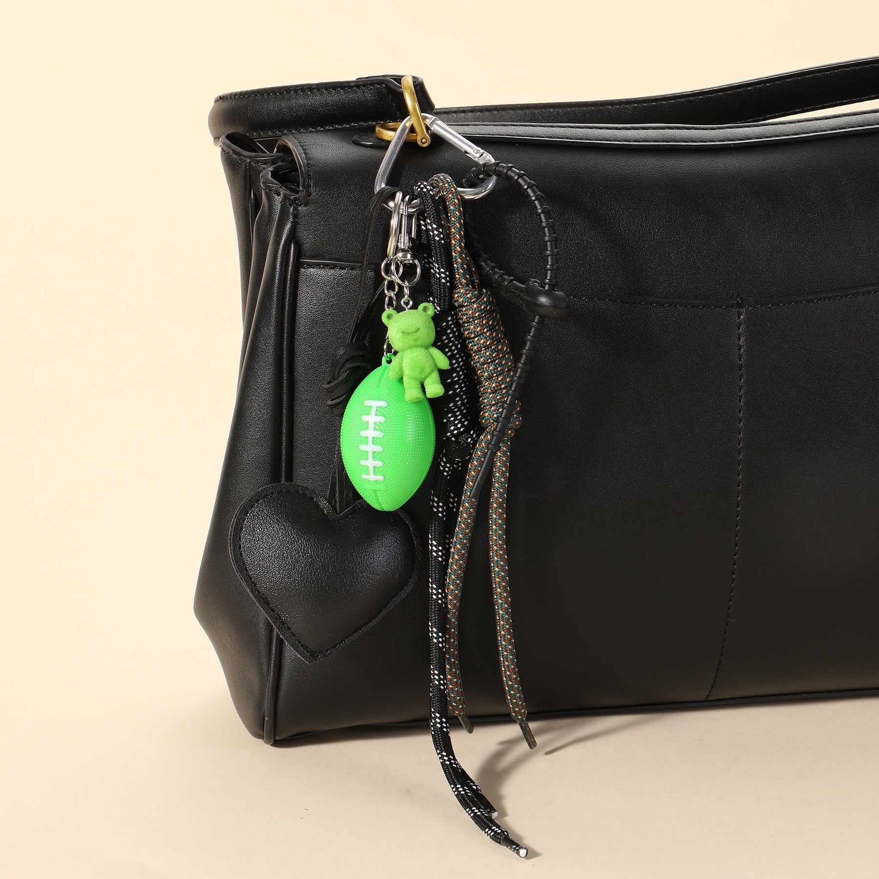 グリーンラグビー テディ&ブラックハートチャームバッグ