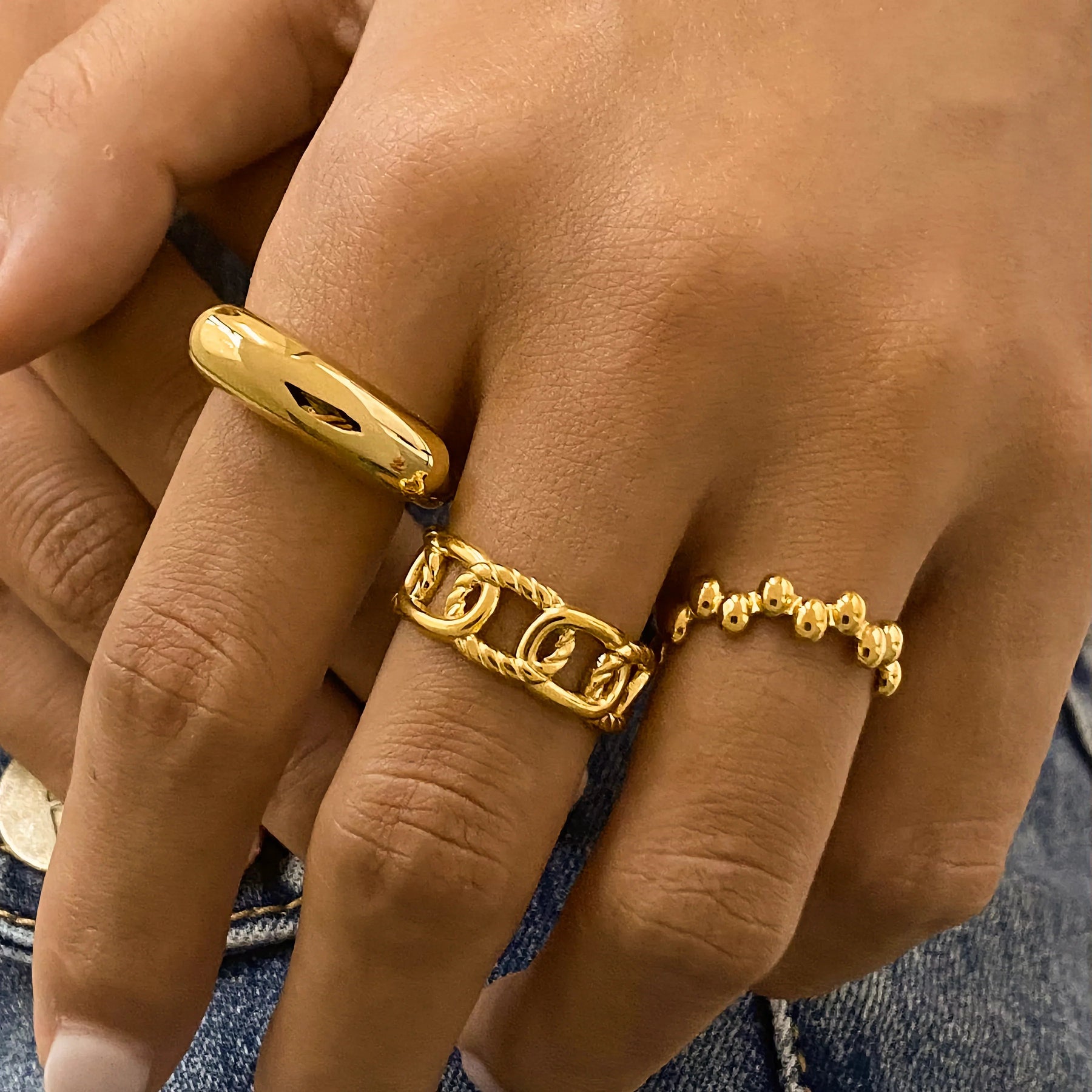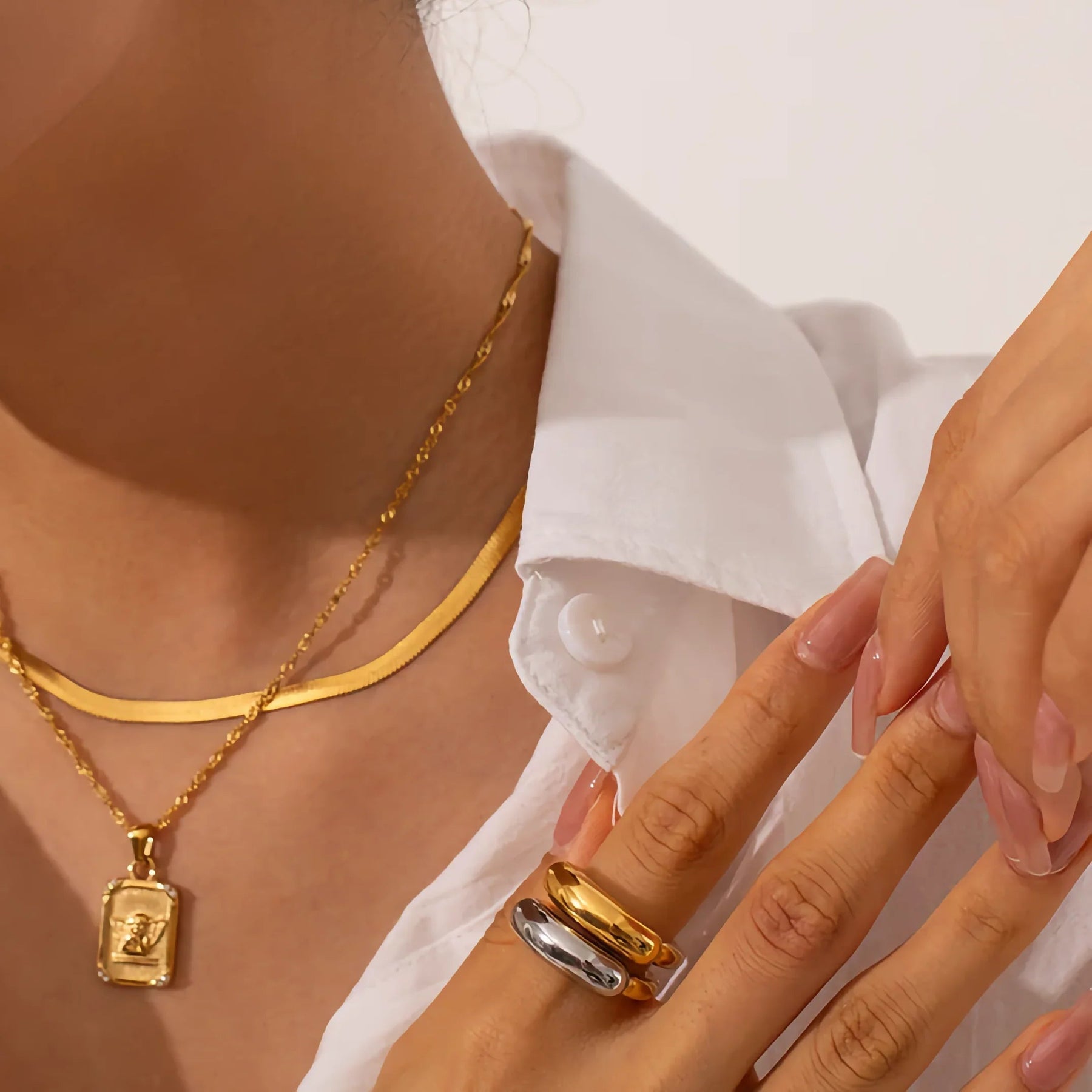 特にゴールド系のアイテムは肌馴染みが良く、高見えします。