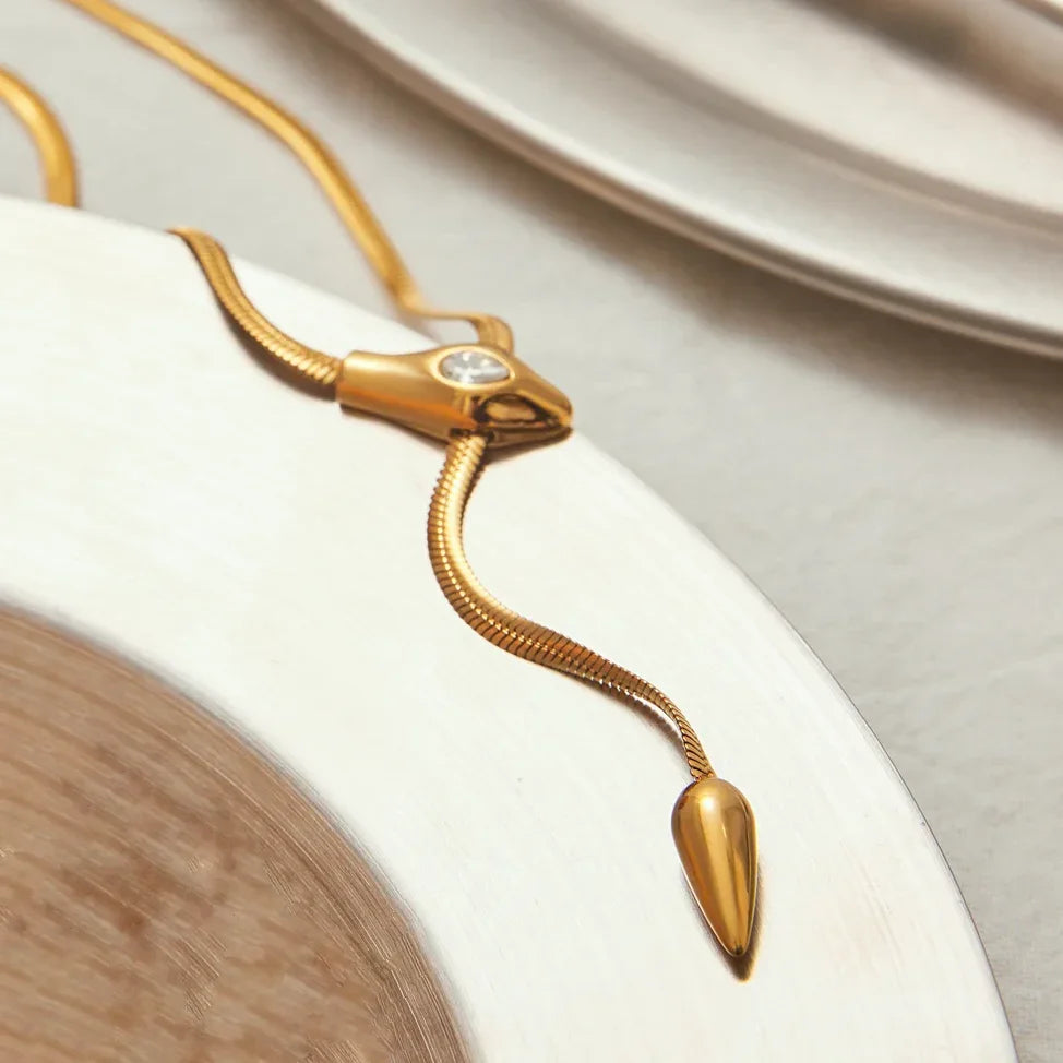 アファリアのザリリは、目を引くスネークデザインのネックレスで、緩やかな仕上げのゴールドで作られています。 エレガントな形状が首に優雅に巻き付き、現代的でありながらも永遠の魅力を感じさせるステートメントを取り揃えております。
